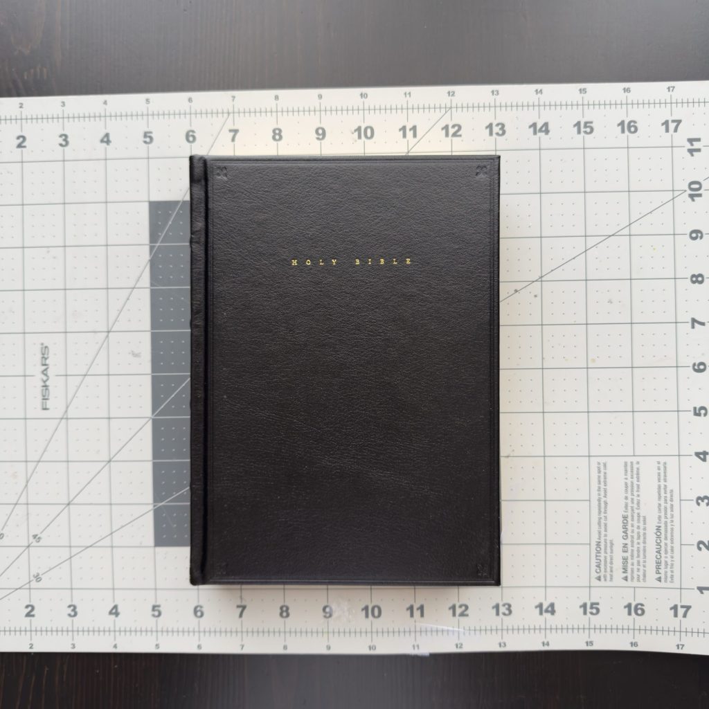 Yes, it’s a hardcover, and that’s a good thing, in my opinion. Too many hardcovers feel like cheap pew Bibles with glued bindings that break quickly with regular use. Here, though, you’ll find something better with sewn bindings and a beautiful cover. Blind‑stamped titling and a patterned spine give it a refined look clearly inspired by the Victorian bibles.