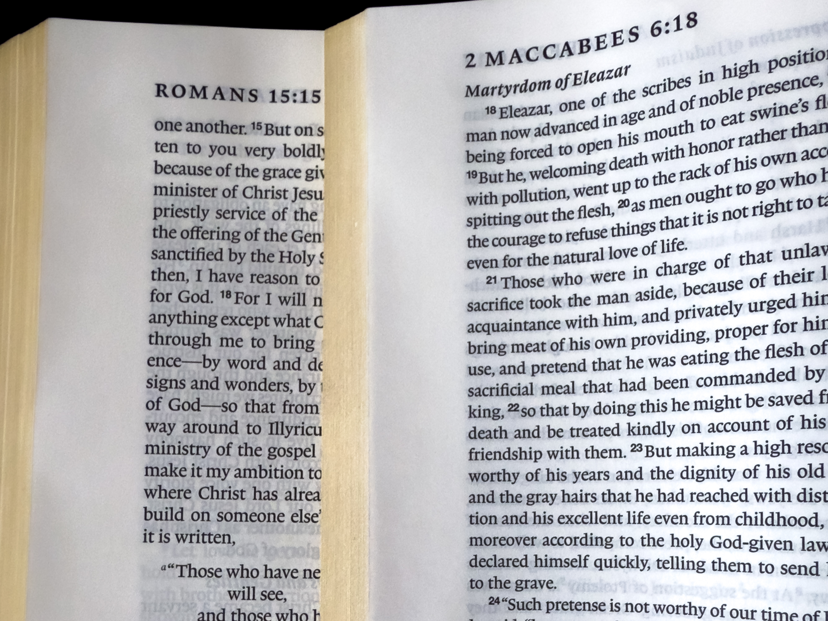I still remember last year’s daily‑office lectionary calling for 2 Maccabees 6. One line leapt out, “Therefore, by manfully giving up my life now, I will show myself worthy of my old age.” I was following along on a podcast with no Apocrypha in hand and thought, “Wouldn’t it be nice to read these passages alongside the rest?” Now I finally can.